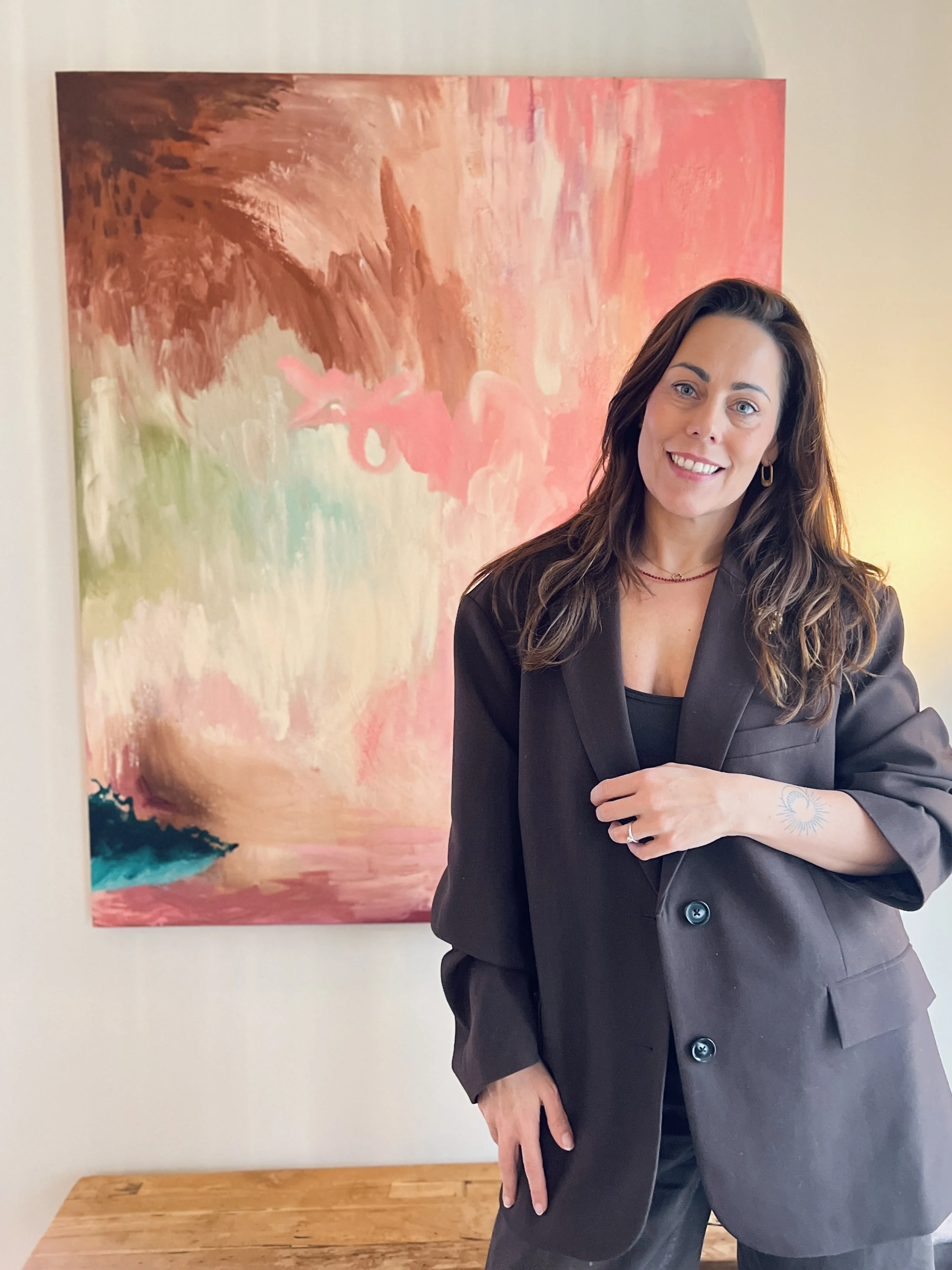 Anouk Aimée Art maakt expressieve kunstwerken die kleur en karakter brengen in woonruimtes, waarin speelsheid wordt gecombineerd met verfijning en emotionele diepte.