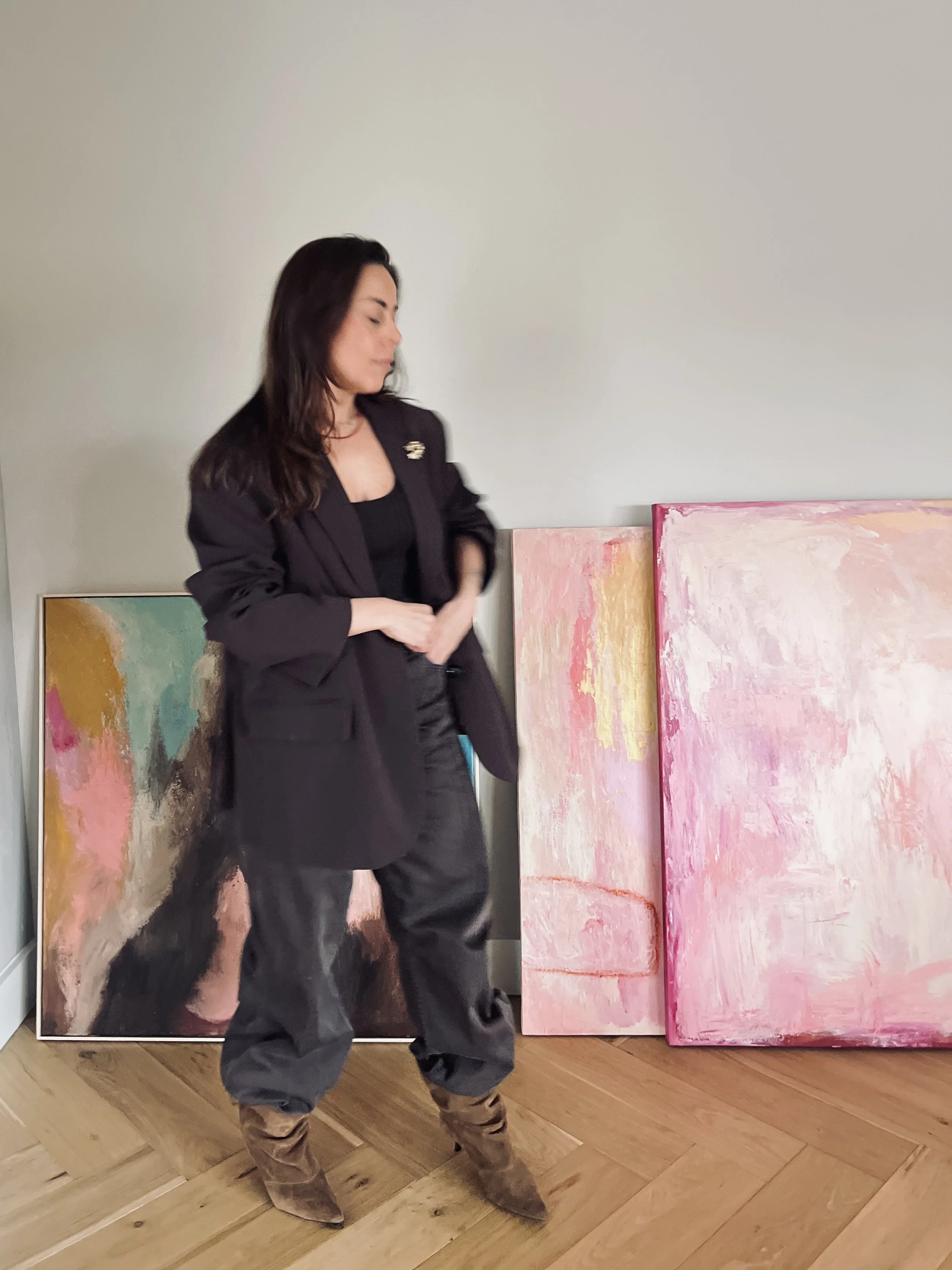 Daarnaast sta ik open voor freelance opdrachten binnen de mode, waarbij mijn ervaring in ontwerp, kleur en vorm een sterke basis vormt. Ook maak ik schilderijen op maat voor particuliere en zakelijke klanten. Interieur is altijd een passie van mij geweest en sluit voor mij naadloos aan op schilderen en mode.